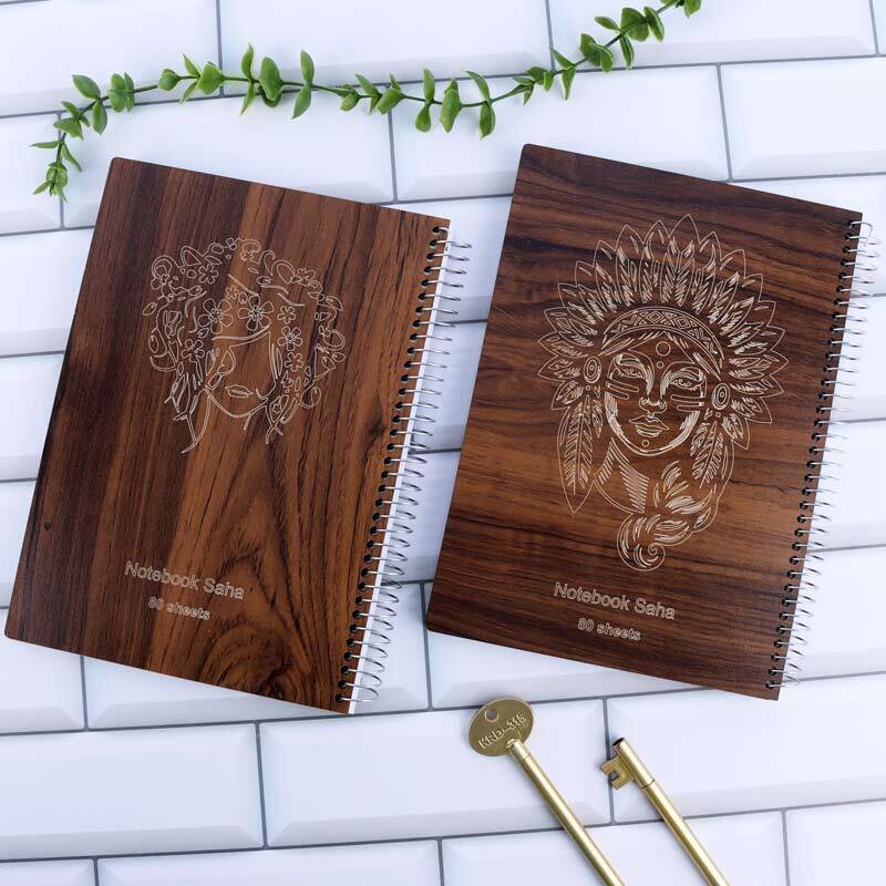 دفتر سیمی 80 برگ جلد چوبی سها